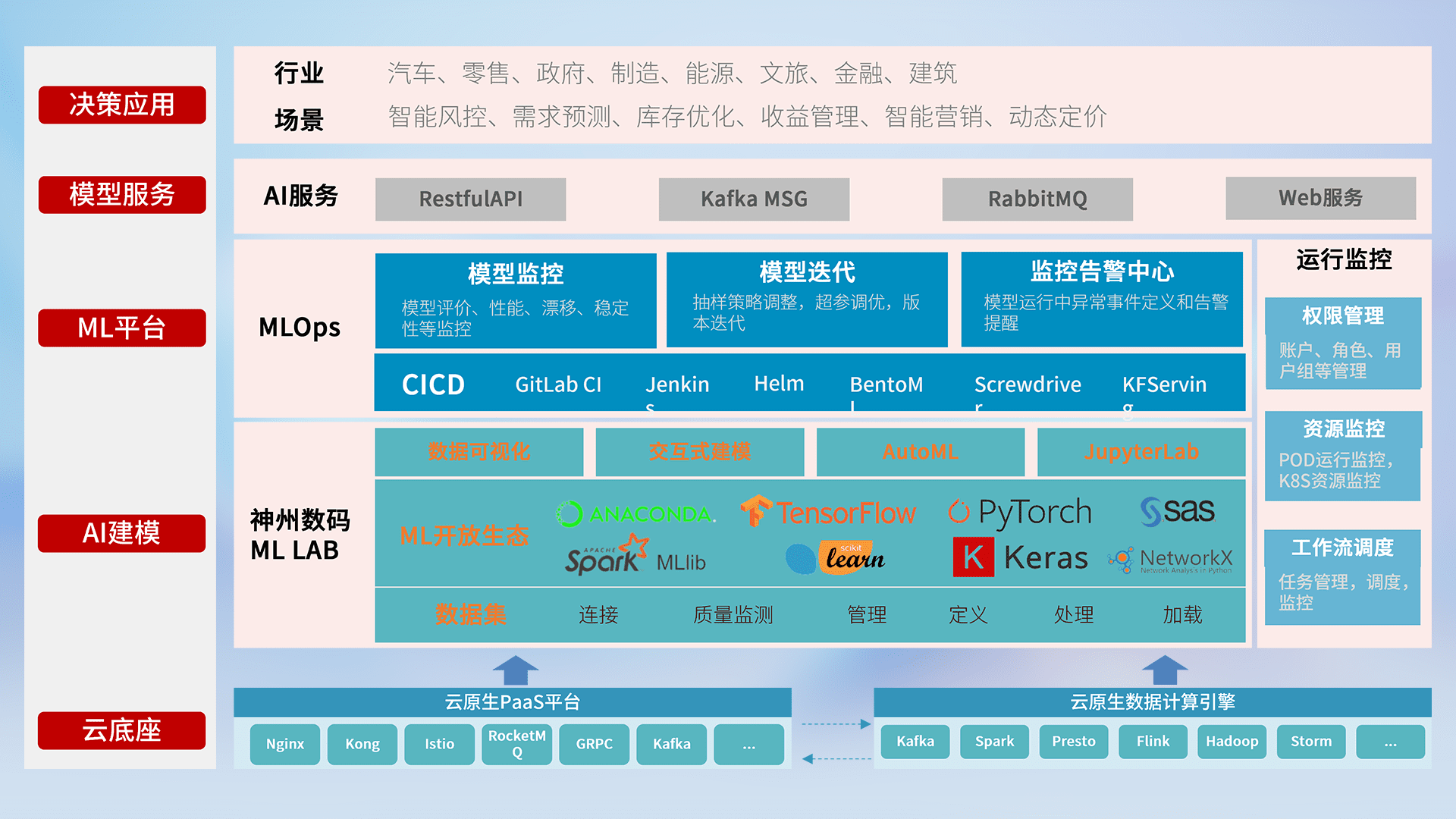 数据+模型双引擎驱动,,面向智能服务场景,,,,快速灵活利用AI技术,,,支持业务决策,,助力企业智能化转型破局。。。